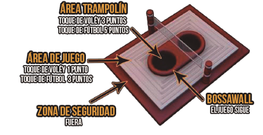 * toque de vóley: 1 punto si la pelota golpea la zona principal. 3 puntos si la pelota impacta en la cama elástica.